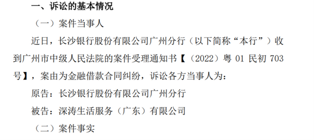 除了ST花王,长沙银行还牵涉到恒大系的债务案中,其在4月1日披露,长沙银行广州分行起诉被告深涛生活服务为恒大智能汽车归还全部剩余贷款本金14亿元、利息0.93亿元(至2022年3月21日),合计近15亿元。
