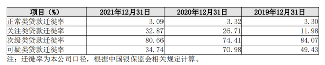 不过,该行关注类贷款迁徙率和次级类贷款迁徙率大幅走高,分别较上年上扬6.16个百分点、6.25个百分点。