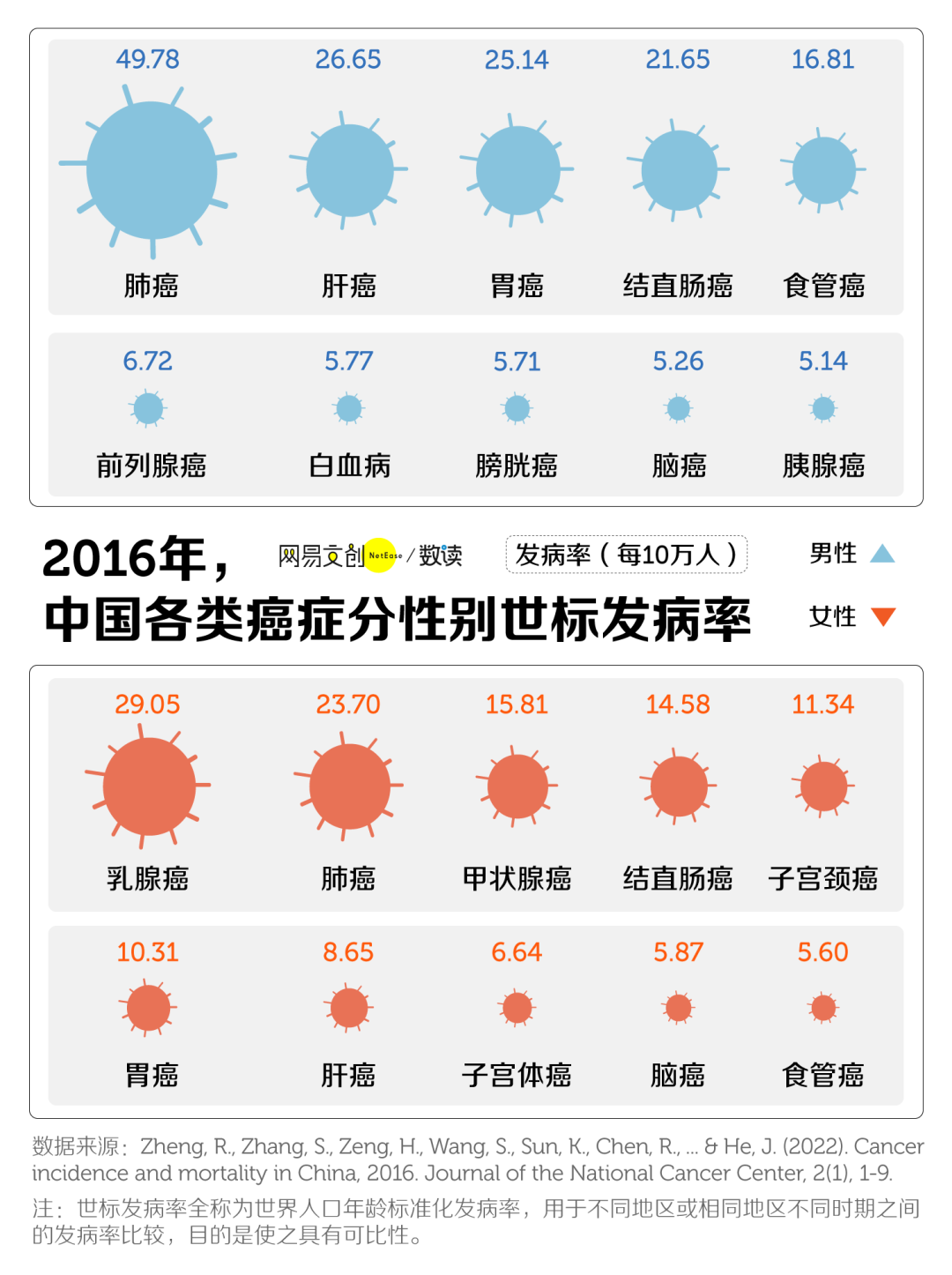 以 2020 年为例,韩国的世标发病率为 26.6,加拿大的世标发病率为 17.4,位居世界前列 [2]。