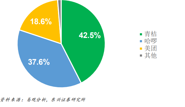 首先,从共享单车生意本身来看,共享单车竞争格局已经固化。根据易观分析数据,青桔、哈啰、美团已经坐稳行业TOP3,并且三家之间的市场份额已经相对稳定。而且TOP3在区域投放上也一定程度上形成了差异化,如哈啰的优势地区在低线城市,而美团单车重点布局高线城市。