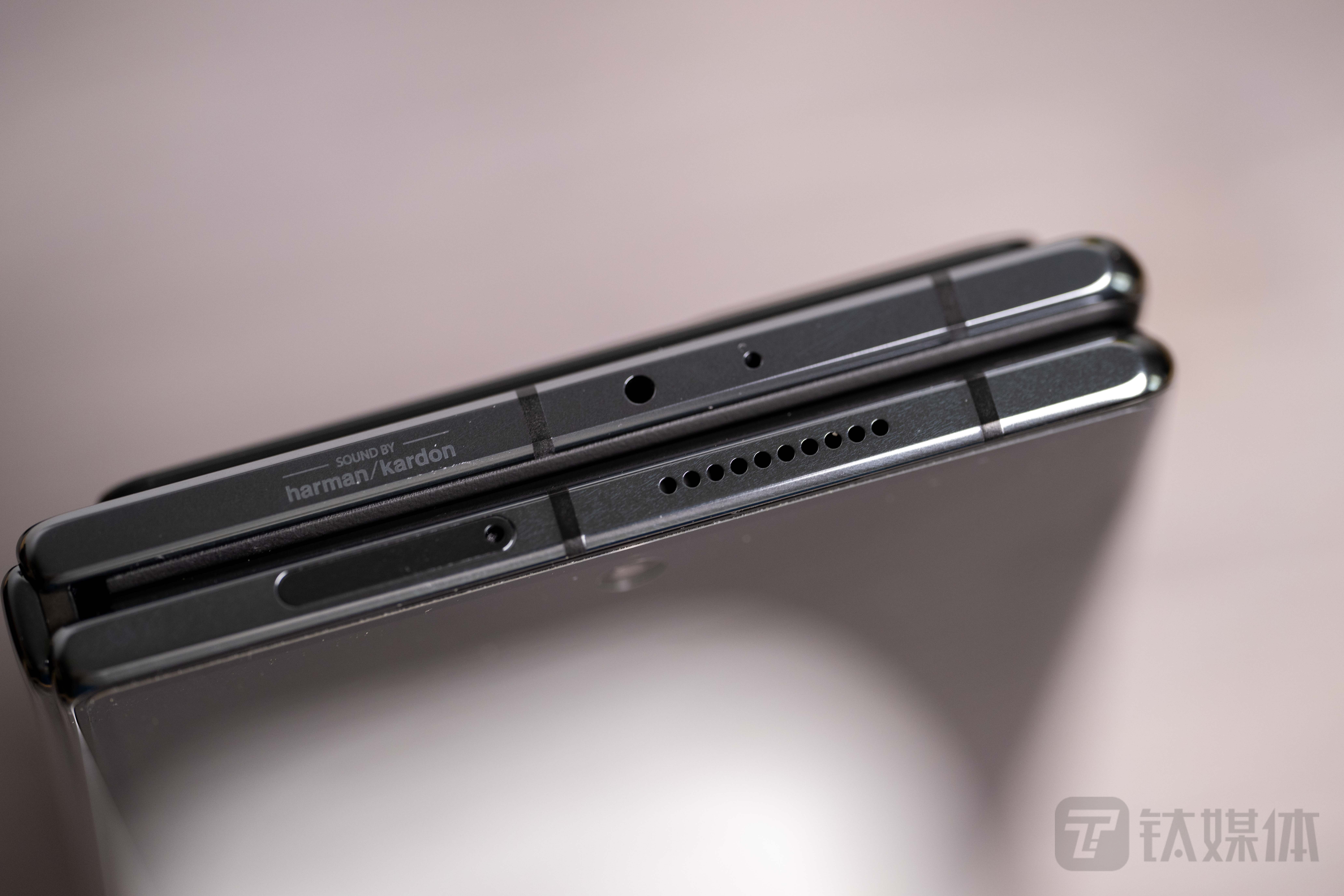在一些细节设计方面,哈曼卡顿团队调教的立体声双扬声器已经成为了目前小米主流旗舰机型的标准配置,在小米MIX Fold 2同样也没有缺席。另外在展开状态下横握手机,还能完全做到不遮挡扬声器孔位,从而带来了更好的外放听感以及立体声效果。