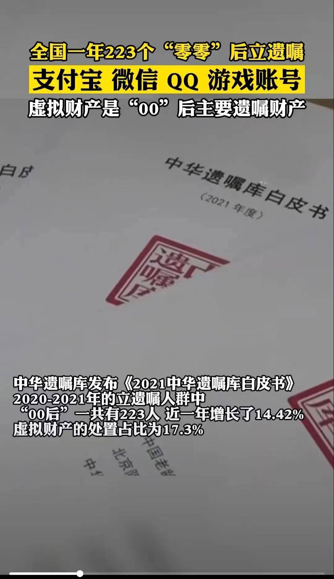 根据《2021中华遗嘱库白皮书》显示,2021年80后、90后和00后在中华遗嘱库立遗嘱总人数达1653人,比2020年增长了78.6%,其中最年轻的是 17 周岁。