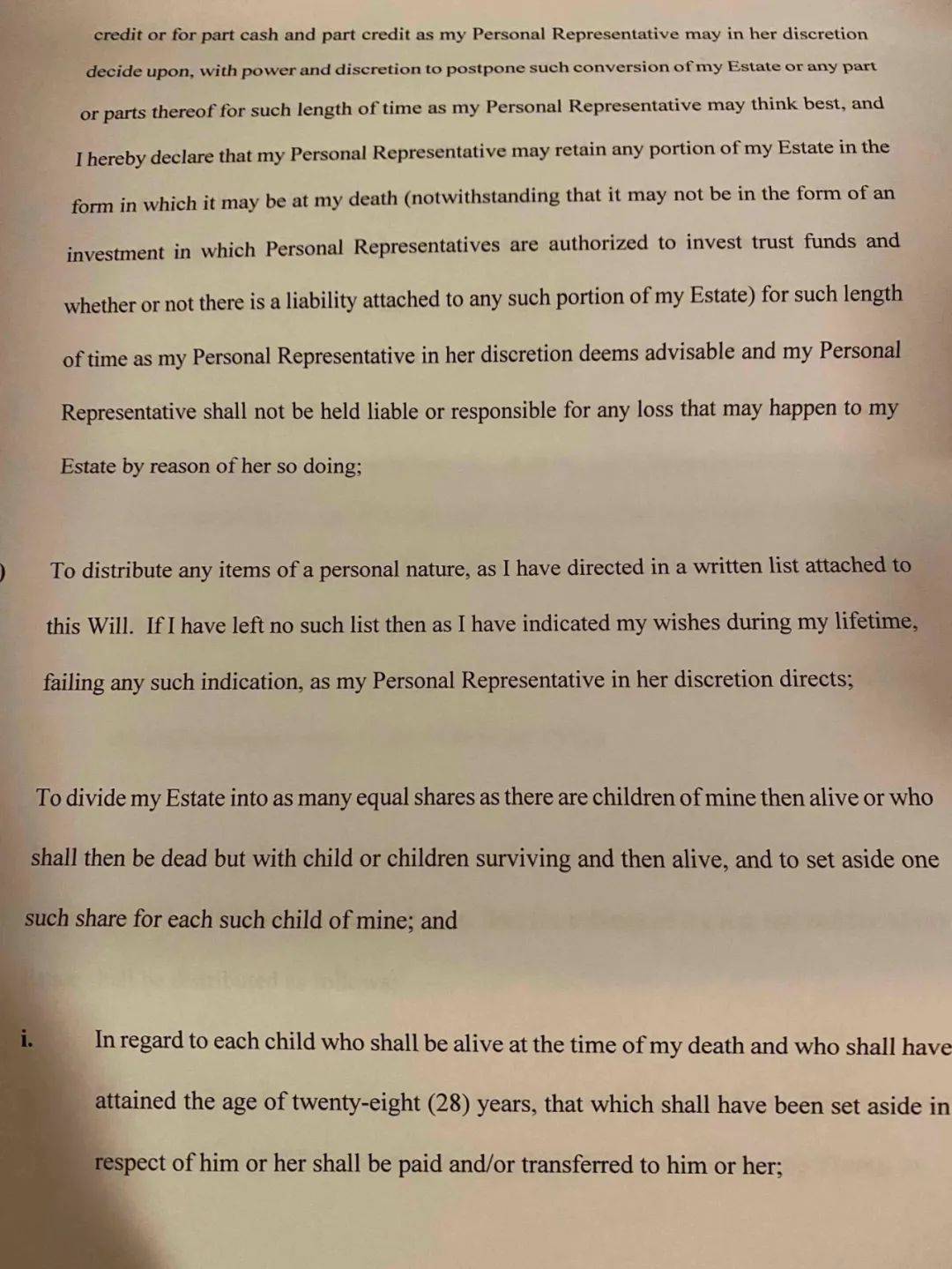 律师给我们的建议是每五年做适当的调整,最近我们正打算更新一下,包括新投资的房产、我爸妈想传给我孩子的东西,还有我和先生正在看墓地,等买好后也会添加进去。