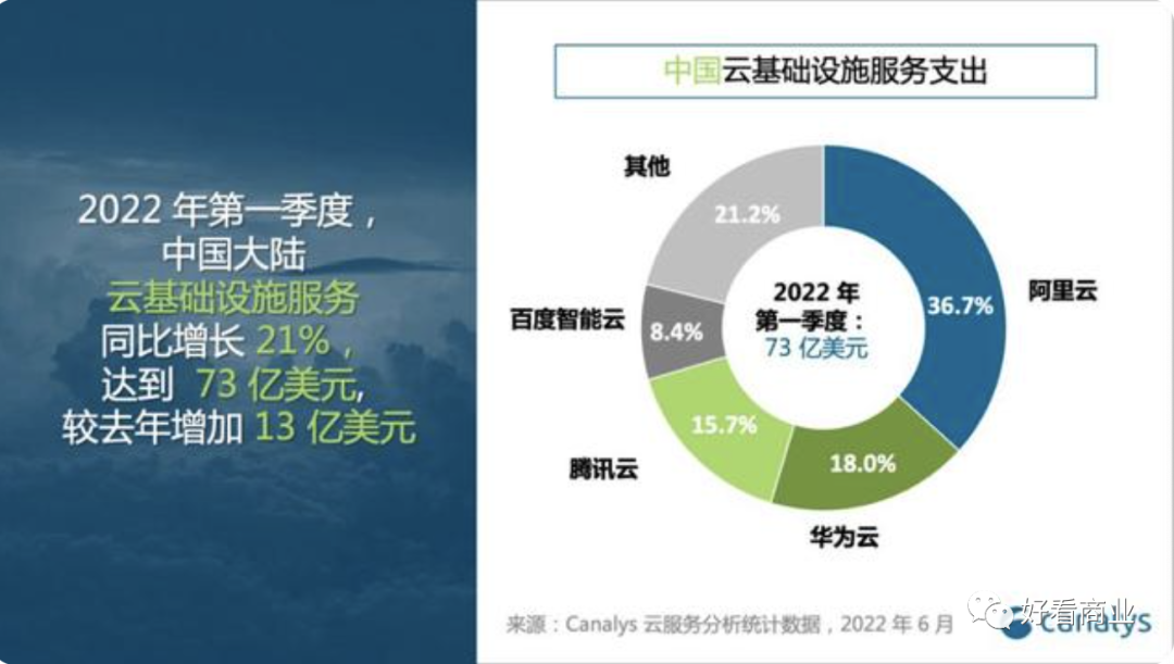 据IDC发布的数据,2022年Q1,华为云在中国公有云市场份额达到18%,仅次于阿里云,位居第二。