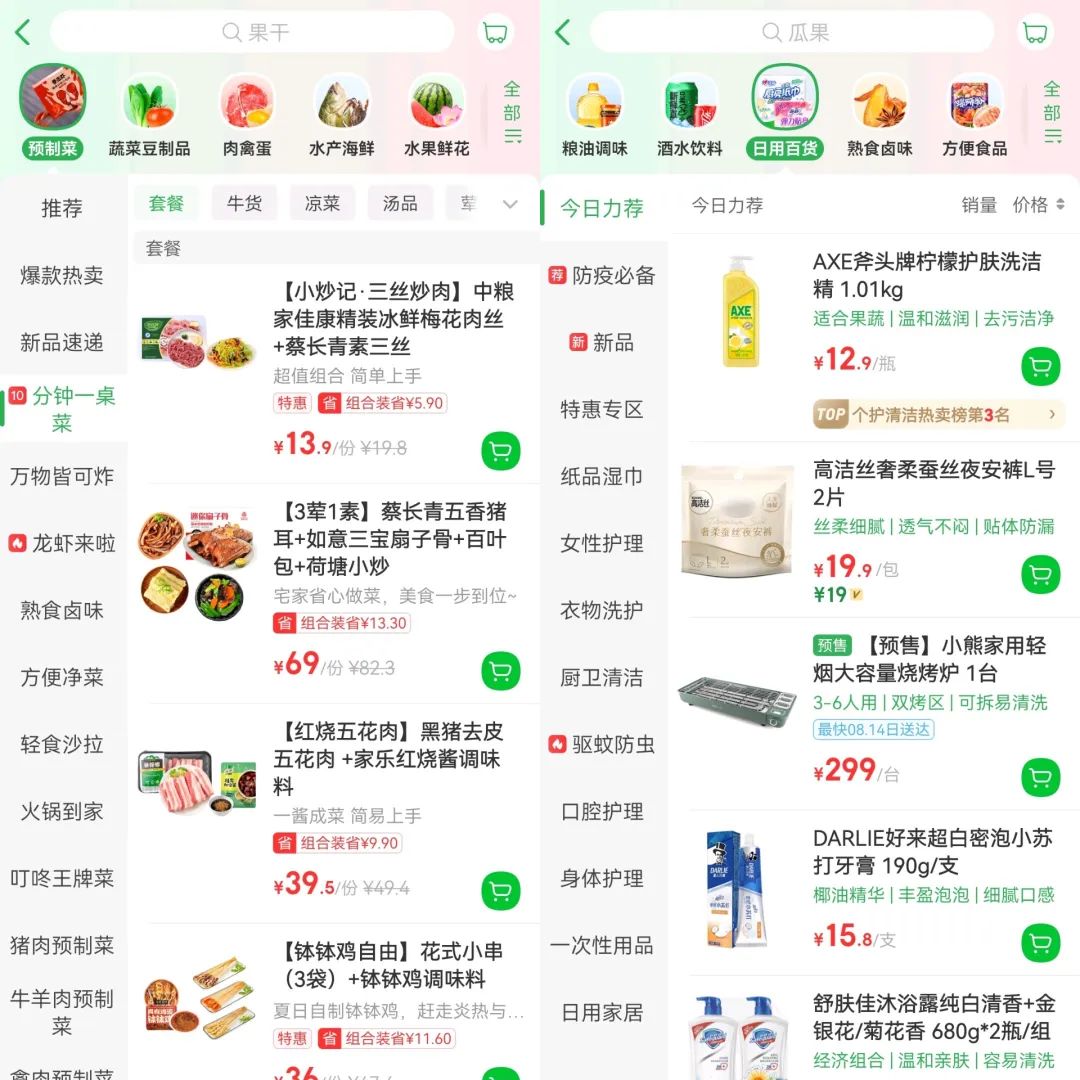叮咚买菜APP上的预制菜与日用百货