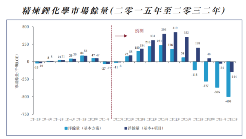 2015年-2032年全球精炼锂化学市场余量,来源:天齐锂业港股IPO招股书