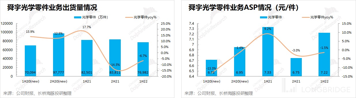 - 光学零件业务 ASP:2022 年上半年均价 7.22 元/件,同比减少 1.5%;