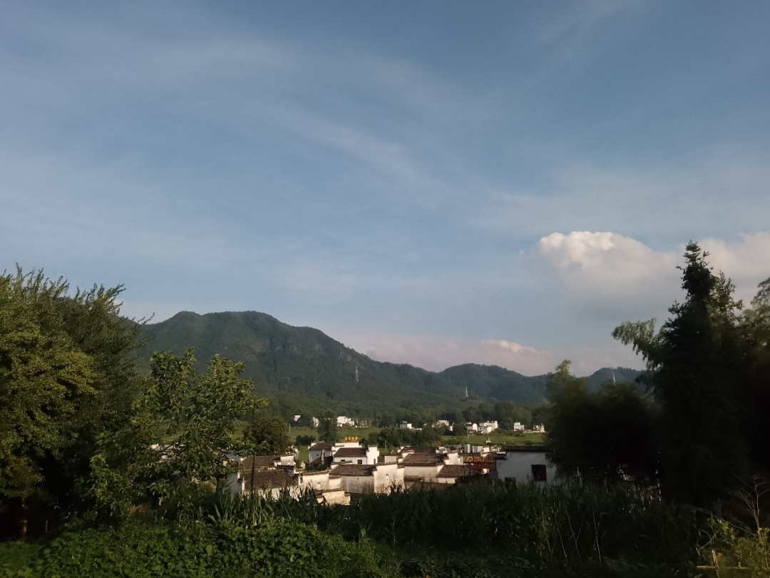 正如很多当地人所说,黄山市政府所在的屯溪区几乎是整个黄山市仅有的平原地带,小巴刚刚驶出屯溪区驶入休宁县内,几乎立刻就切换到山路模式。窗外景象迅速从城郊的工厂和民居,切换成了望不到头的群山和澄澈的蓝天白云。