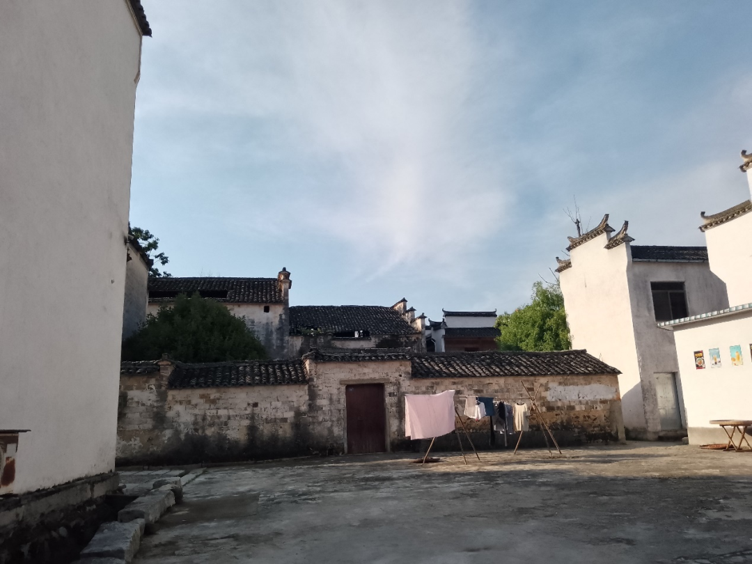 院子里的学生围着桌子坐成一圈,大部分在画屋檐,那是徽派建筑的标志性特征之一;少数几个在画远处的山,山上可能种了茶树,也可能种着竹子,反正隔得远看不清,铺上绿色就可以;一个男孩单独坐在门口,照着小卖铺老板的样子画人像。