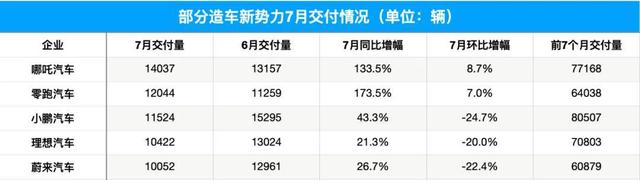 其中尽管蔚来7月交付新车10052台,同比增长26.7%,但和哪吒、零跑相比,显然不够看。