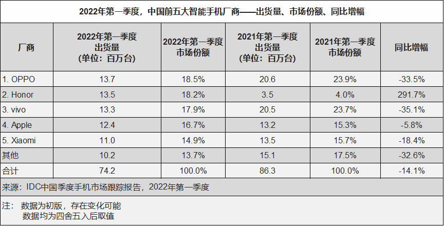 而IDC在2022年一季度末便预测称,若无额外正向刺激因素的出现,2022年中国智能手机市场容量或将跌破3亿台大关。这一数字与2016年5.22亿的中国智能手机出货量峰值相比,降幅接近一半。