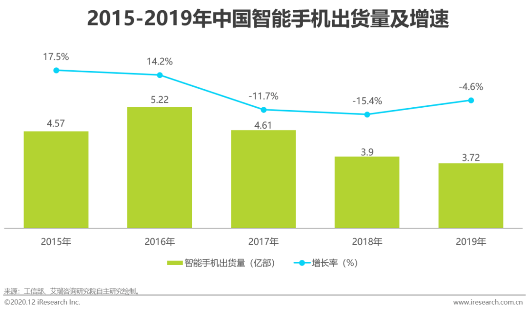 据艾瑞咨询数据,当年中国智能手机出货量达至历史峰值的5.22亿台,智能手机渗透率,也于2016年正式达至93.2%,接近天花板。从功能机到智能机的技术切换浪潮,至那时已基本完成。