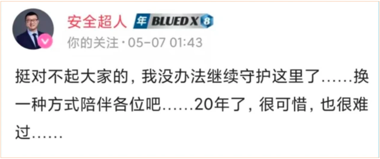 对于蓝城兄弟的“由盛至衰”,创始人马保力也发达了惋惜。2022年5月7日,在签署私有化协议的公告发出一周之后,他曾在其Blued账号上发文称:“挺对不起大家的,我没办法继续守护这里了,换一种方式陪伴各位吧……”