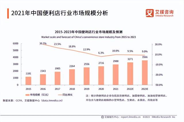 在相关的报告中,艾媒咨询分析师认为,中国便利店行业市场规模,预计将在2023年达3566亿元,门店数量将达18.5万家。中国便利店行业将向品牌连锁化、数字化、消费情景多样化的方向发展。
