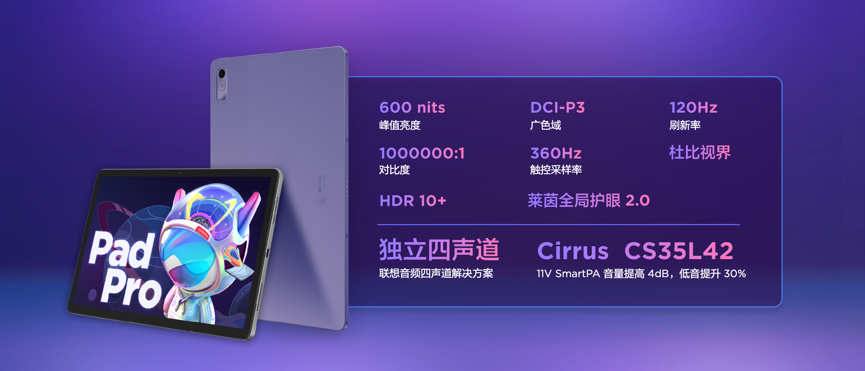 影音体验方面,小新Pad Pro 2022支持硬件级真10亿色和1920Hz 高频PWM调光的11.2英寸OLED屏幕和四个JBL扬声器。