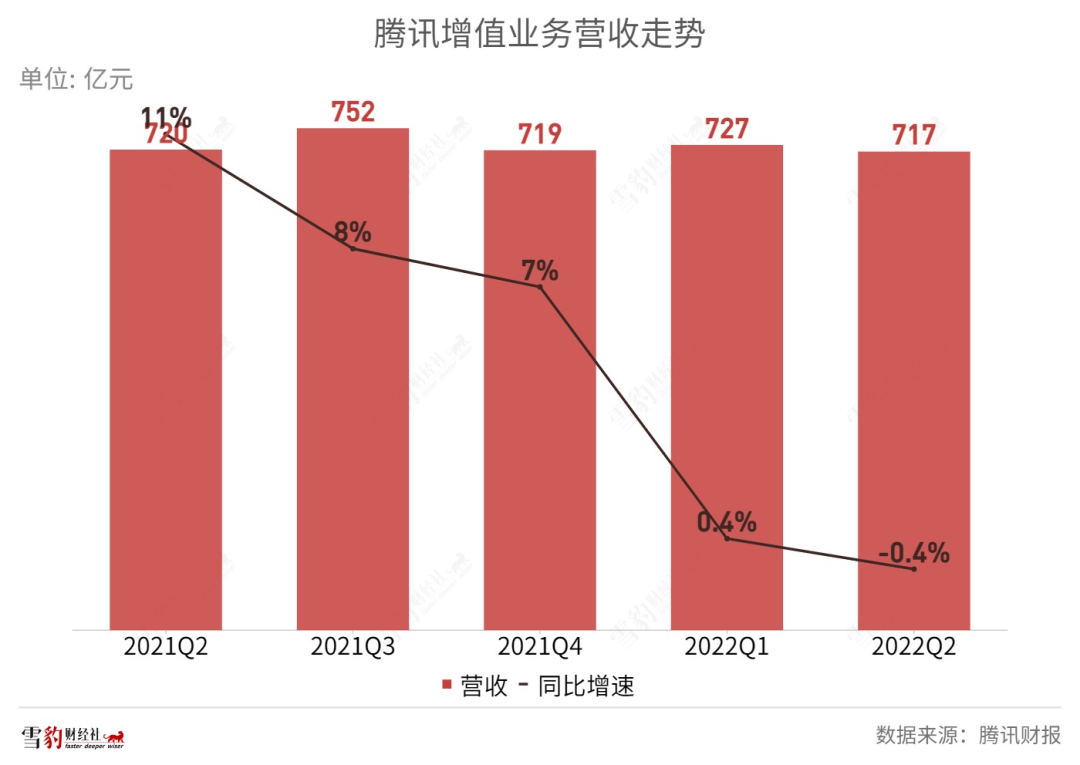 二季度,增值业务依然是腾讯最大的现金牛,占比总收入54%,营收717亿元,同比微降0.4%。隶属于增值业务的游戏营收425亿元,同比下降1.2%。