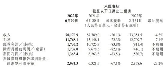 截至2022年6月30日止的第二季度财报显示,小米各项主要财务指标均出现了同比下滑。其中,当季营收702亿元,同比下降20.1%,环比下降4.3%;净利润21亿元,同比下降67.1%,环比下降27.2%。