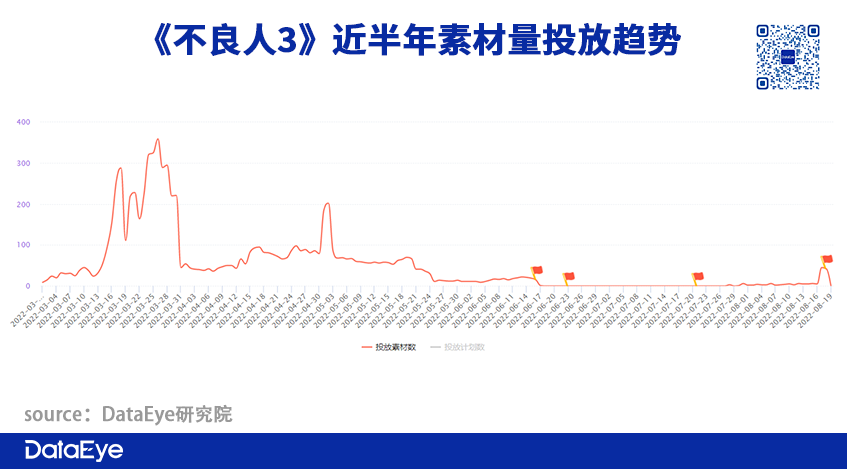 从时间线上看,DataEye研究院认为,《不良人3》原计划于22年Q2上线,承接原作《画江湖之不良人 第五季》完结后的IP热度,但最终于8月中旬上线,错过了与原著IP相互联动的阶段,影响了推广组合拳的节奏。