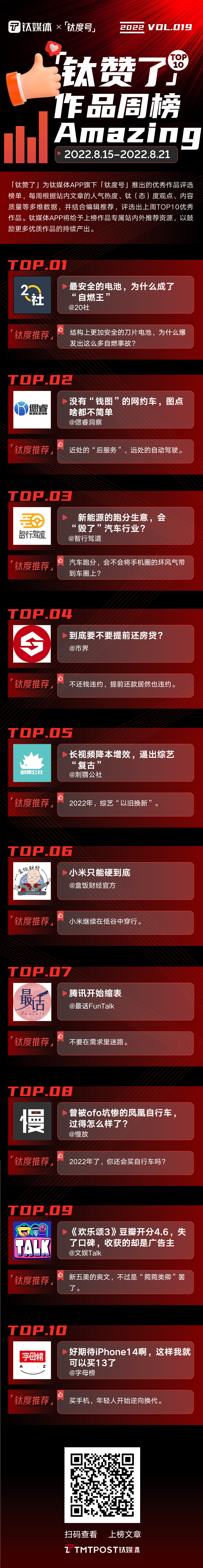 2022年8月15日—8月21日,「钛赞了」榜单第19期上榜作品为: