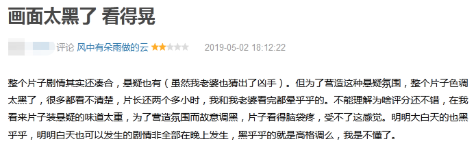 但就目前的口碑发酵来看,“暗色调”本不是影片的加分项,反而成为介于及格作品上下的度量衡,原因为何?