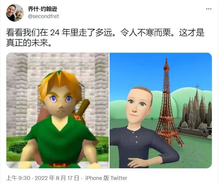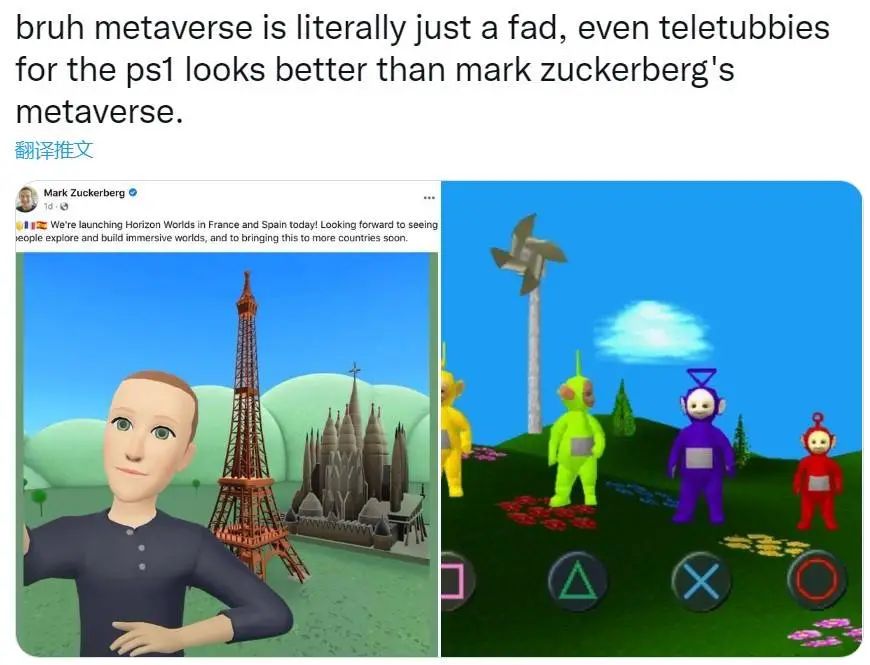 Twitter 上有不少梗图拿出古董级游戏,对这张 2022 年「元宇宙」自拍冷嘲热讽。