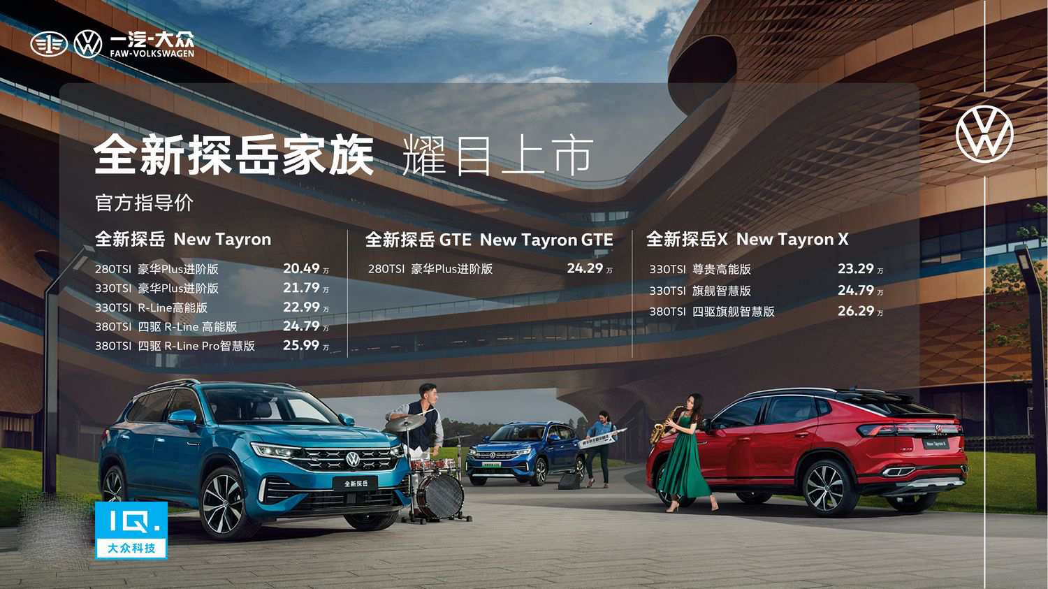 8月23日晚间,一汽-大众全新探岳家族正式上市,包括全新探岳、全新探岳X以及插电混动全新探岳GTE,提供1.4T、2.0T标准功率、2.0T高功率、插电混动共9款车型,官方指导价格区间为20.49-26.29万元。
