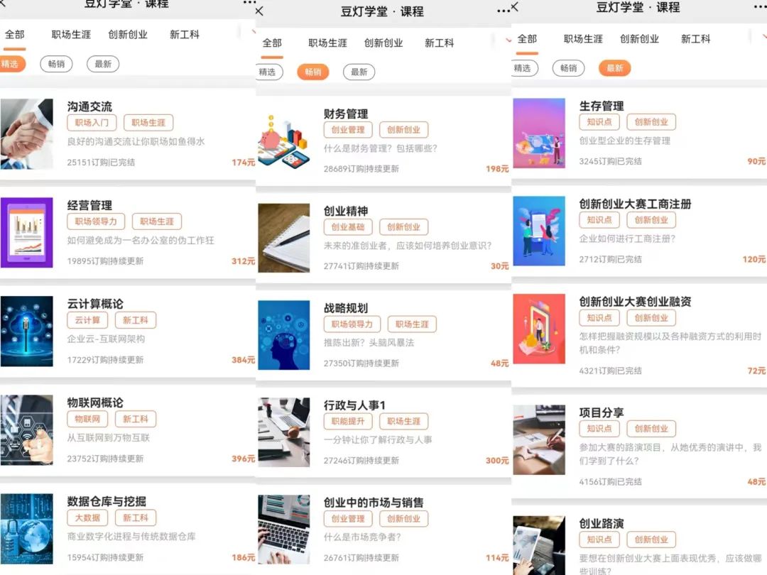 见知教育招股书写着,超7成是公司自研的视频教育内容。但通过豆灯学堂等视频职业教育内容来看,在互联网发达的今天,它的培训课程并没有明确的目的,多为职场技能培训,随便来一个工龄超过一年的打工人都能告诉你,这东西有多玄学。