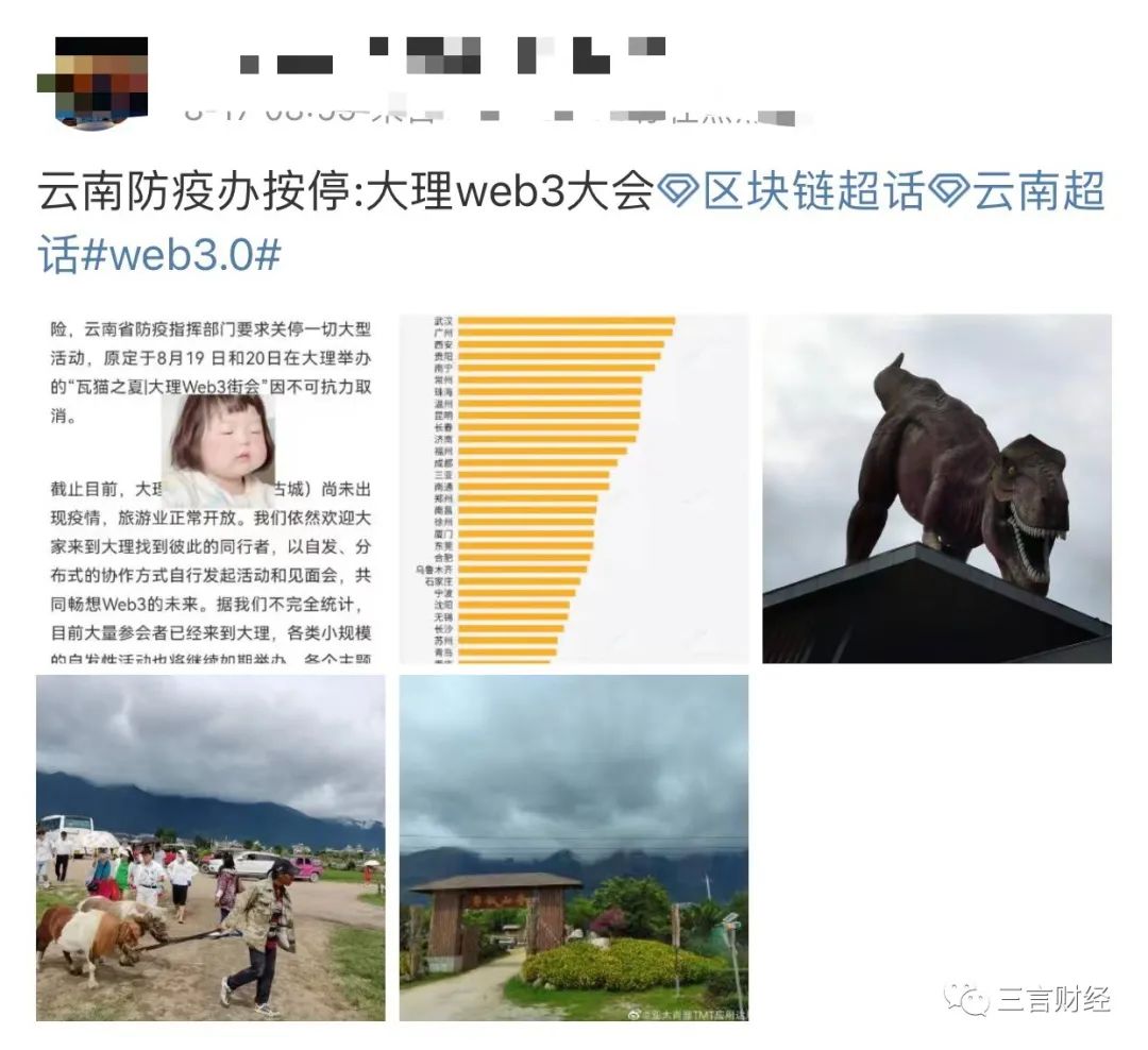 很多网友都纷纷在社交平台上发文称,大理的Web 3活动受疫情影响关停。