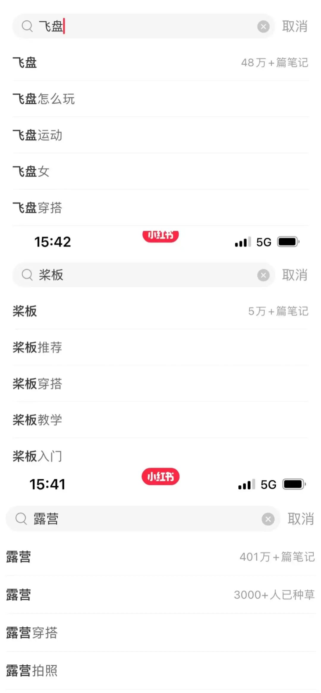 如今,在小红书上搜索露营,可以搜到有关笔记401万+,飞盘则是48万+,小众运动桨板的相关笔记也达到了5万+。在这些词条下的联想条目中,XX穿搭都高居前五位。可见时尚与户外休闲活动之间,有着天然的纽带。滤镜给予了户外运动锻炼者更 “完美”的公共展现视角,也使得野外郊游和户外运动的吸引力,在滤镜下放大。
