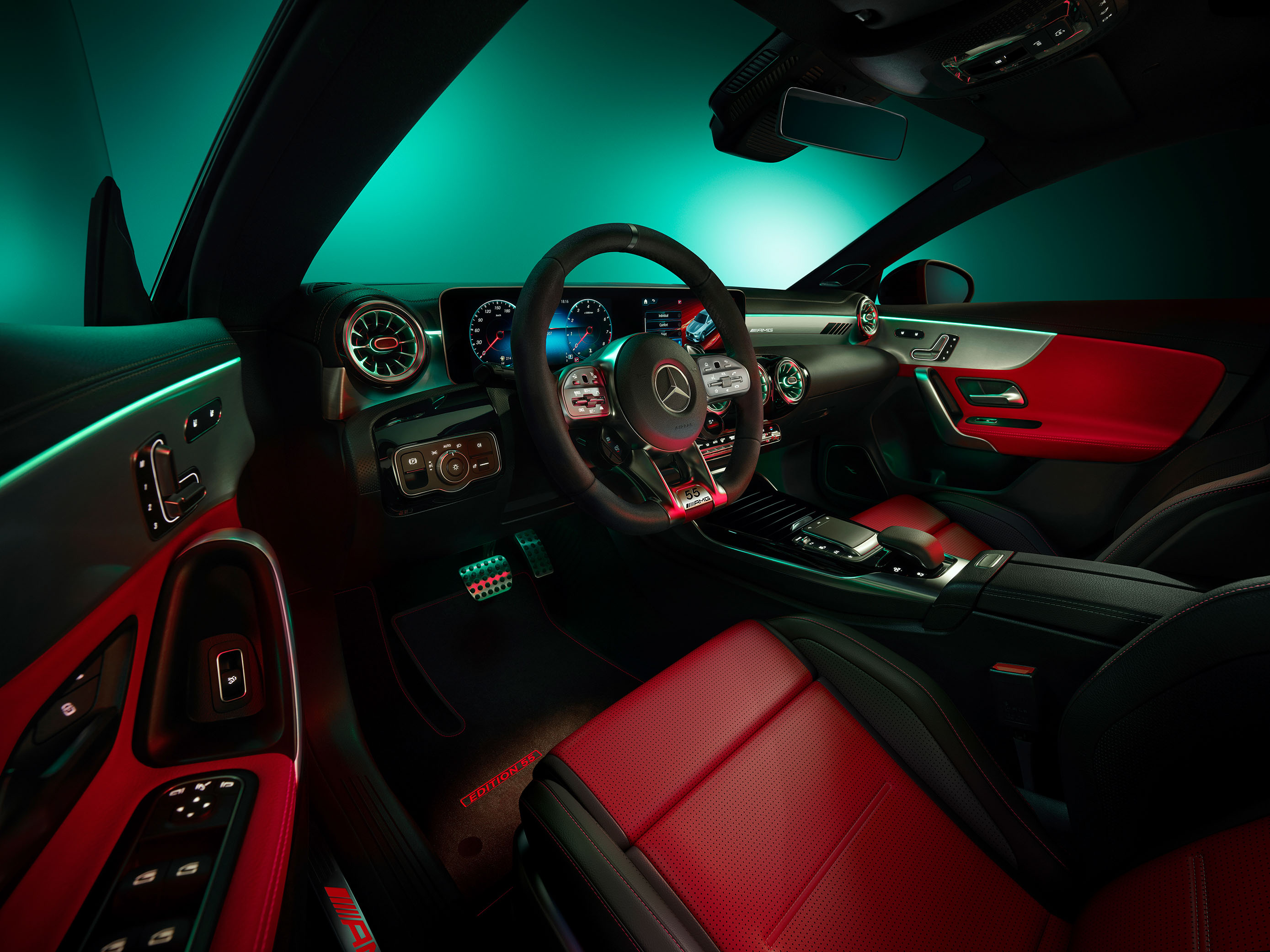 AMG CLA 35 4MATIC及AMG CLA 45 S 4MATIC+ 55周年纪念版车型均配备宇宙黑色或次元白色车漆,同时搭载AMG夜色组件、AMG空气动力学组件及车内的55周年深色铝质饰件,释放动感凌厉的超凡魅力。