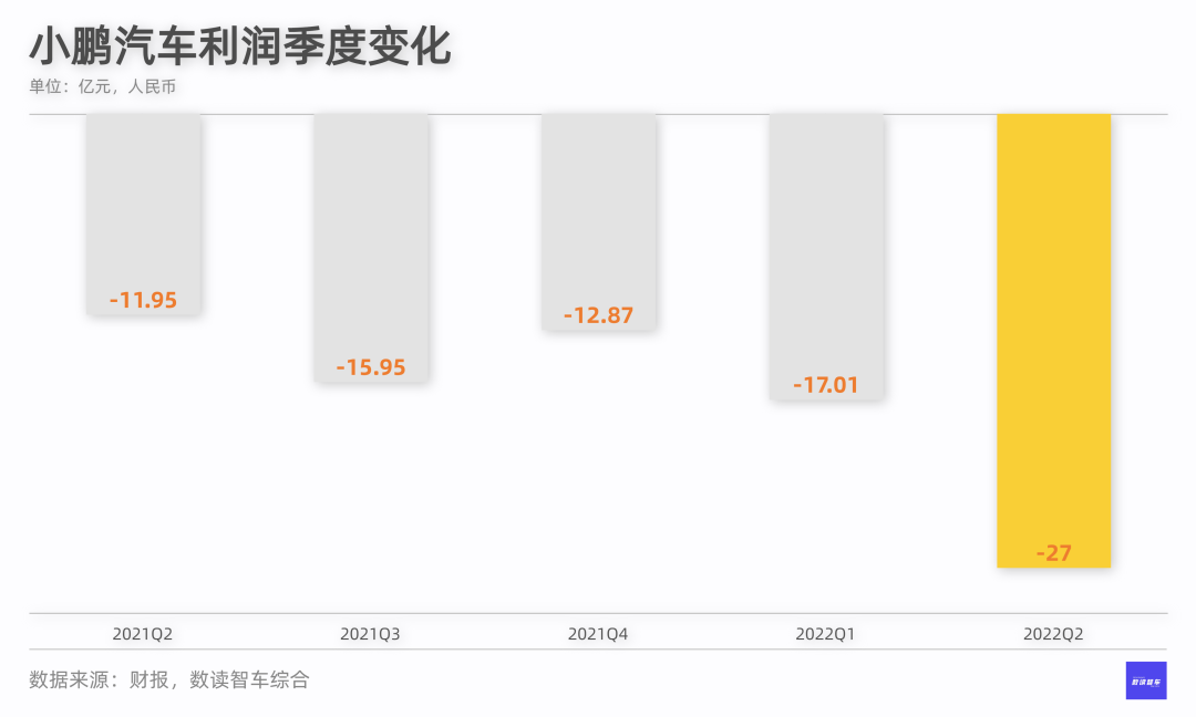 Q2的净亏损27亿,同比扩大了126%,环比扩大59%,从2020年Q3至今,小鹏已经亏了112亿。