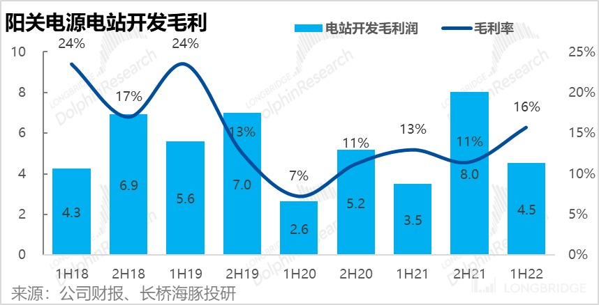 由于电站开发以外的其他业务毛利率都在下降的趋势,整体毛利率也同比由 28% 下降到 25.5%,具体来看