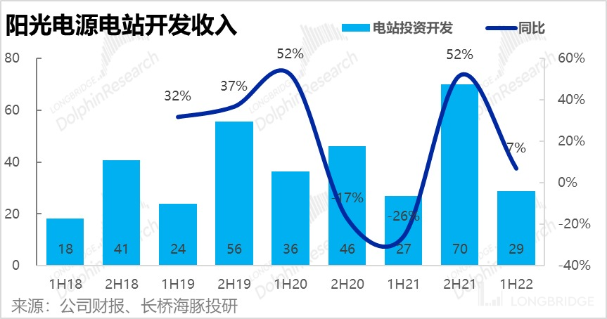 3、电站开发业务: 苦差事的电站开发业务,本季实现营收 29 亿元,相比去年同期较低的基数,也仅同比增长 7%。