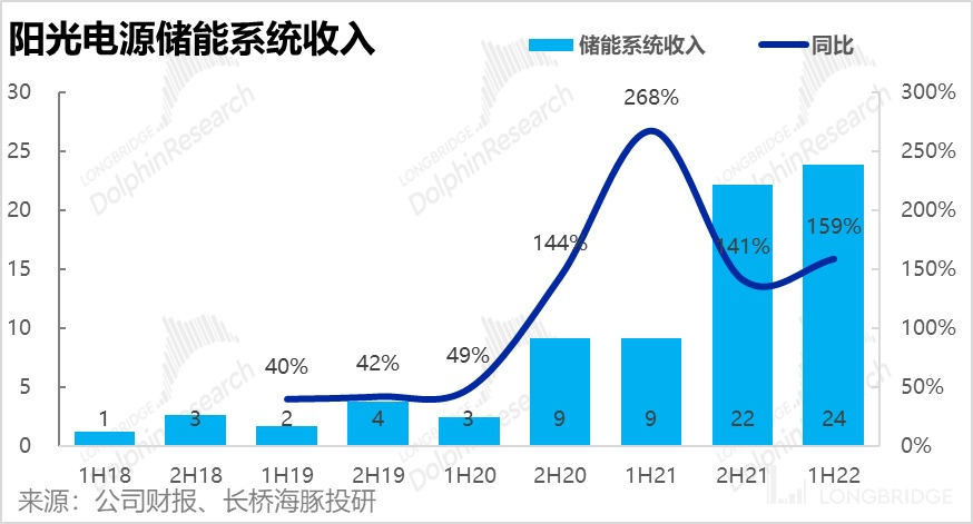 不过虽然储能业务增长迅猛,但公司在年报电话会时曾表示 22 全年储能业务销售目标在 100 亿左右,这意味着下半年储能业务需同比增长近 250% 才能完成目标,压力巨大。