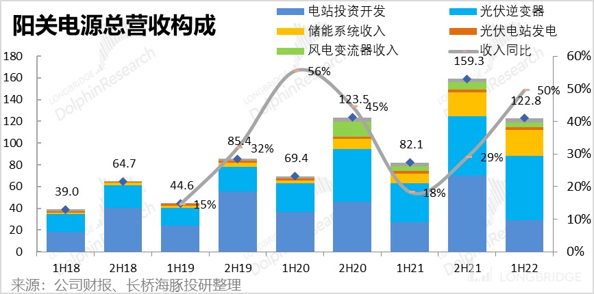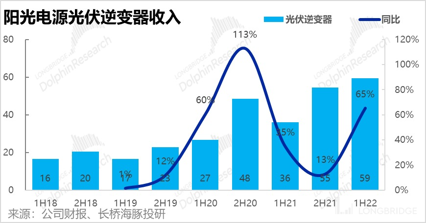 1、光伏逆变器:最主要的光伏逆变器业务 2022 上半年实现营收 59 亿元,同比增长了 65%,对公司总营收增长起了关键拉动作用。