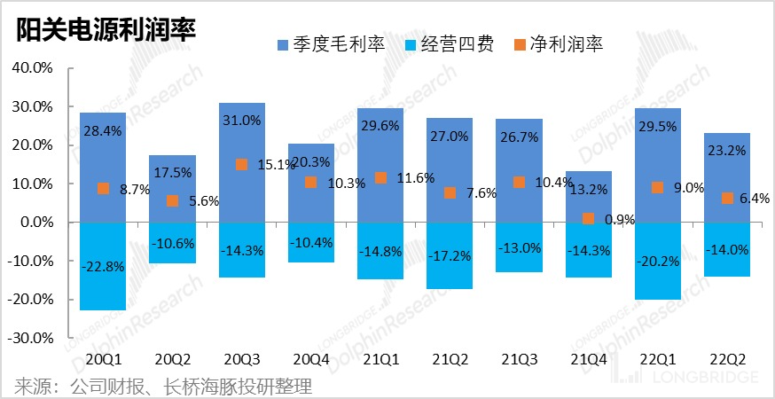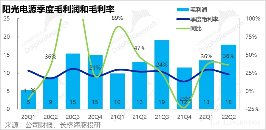 2、继续内卷,毛利率下滑趋势不改:公司二季度的毛利率为 23.2%,环比/同比分别下降了 6pct 和 4pct。毛利润仅同比增长了 36% 到 18 亿元,与营收增速相比显然逊色不少。海豚君猜测 IGBT 等半导体材料等成本上升,以及持续内卷下出货单单价继续下单是毛利率下降的原因。关注管理层在电话会中解释,以及透露的逆变器出货价量信息。