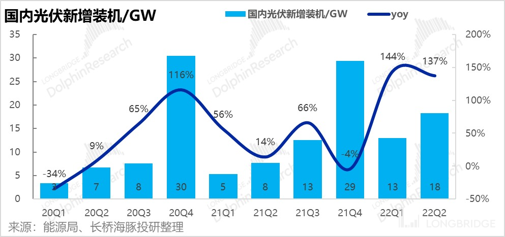 整体来看,22 年上半年,公司一共实现收入 122.8 亿元,在二季度的拉动下同比增长 50%。从量的角度,上半年公司全部光伏设备装机量为 45GW,同比大增加 61%。可见每 GW 装机贡献收入同比下降了约 10%。至于各业务板块具体的价量数据,仍需关注电话会。