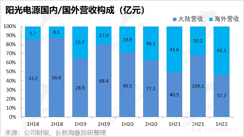 此外,根据公司披露的营收区域构成,今年上半年海外营收占比再创历史新高到 53%,环比提升了 2pct。结合上文提及的二季度逆变器出口暴涨 70% 以上,海外应当是推动公司营收增长的主要动力之一。