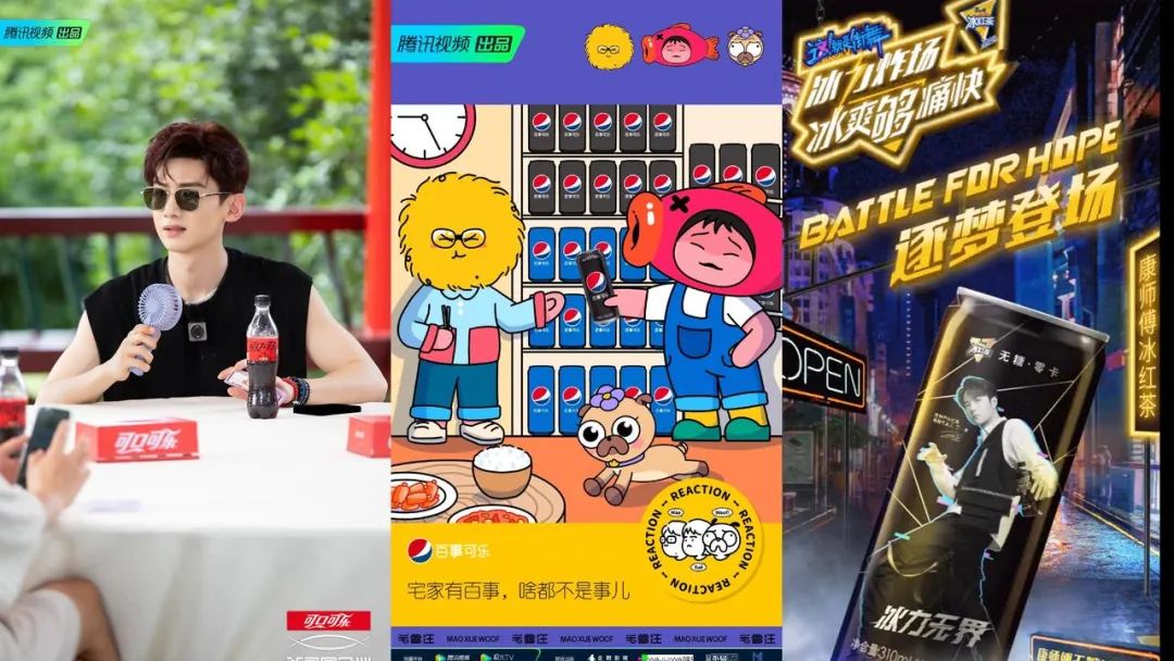 可口可乐、百事可乐、康师傅冰红茶的植入