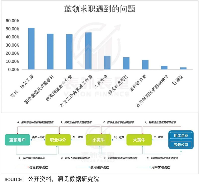 究其原因在于,传统蓝领群体要找工作,除了熟人推荐,主要依靠大大小小的劳务中介。然而走中介这一关,经常遇到克扣薪资、改变工作内容或工作量、职位虚假或其他欺诈等问题。