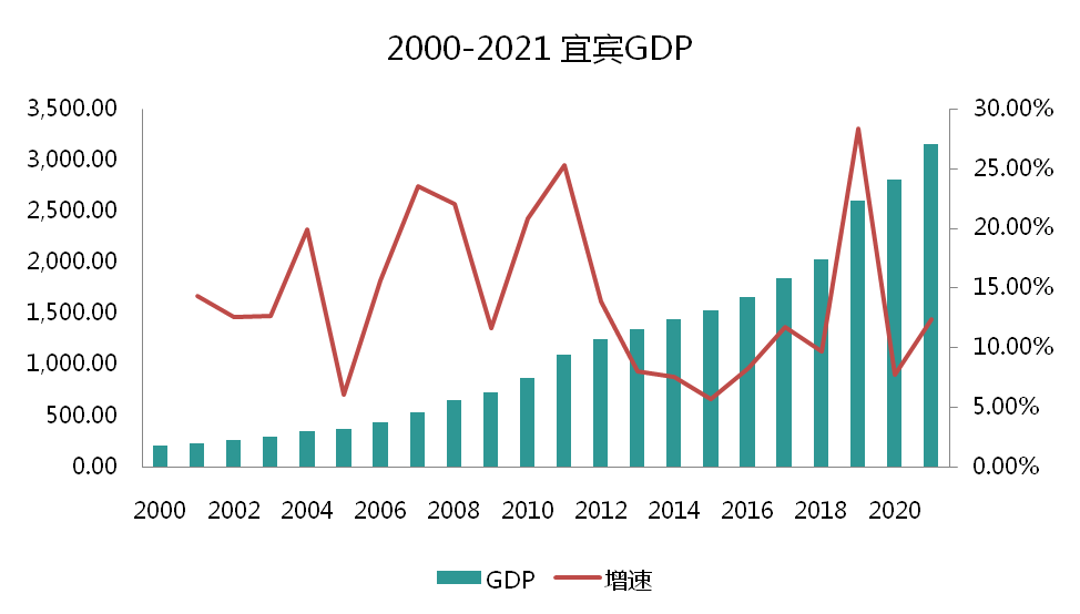 2021年,宜宾GDP为3148.08亿元,排名省内第三,增速8.9%,省内第一。