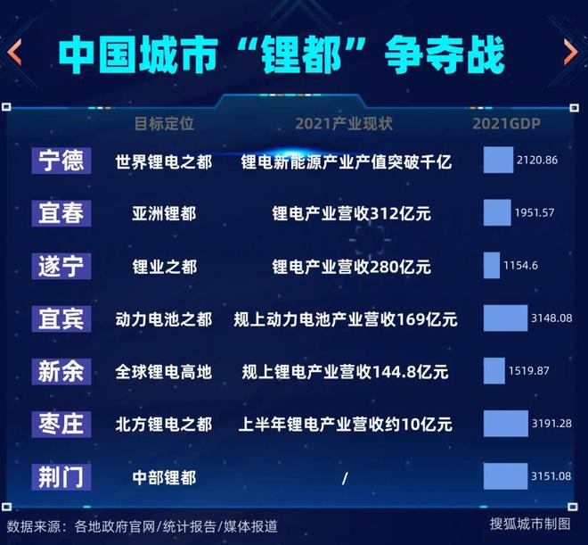 “亚洲锂都”宜春背靠锂矿,宁德、常州(中创新航)、遂宁(天齐锂业)、新余(赣锋锂业)、宜宾和荆门(亿纬锂能)均有企业坐镇,北方代表枣庄近期也迎来了欣旺达、吉利等头部企业的入驻。