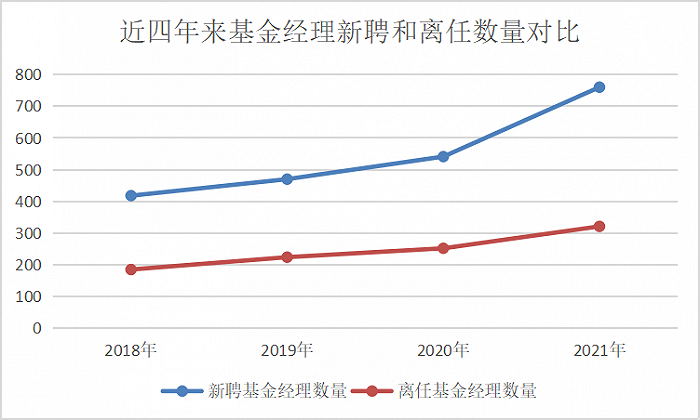 但如果和新聘的基金经理数量对比,可以发现,每年新聘任的基金经理人数远超过离任人数。2018年至今,新聘基金经理的数量分别是418、470、541、760、343。