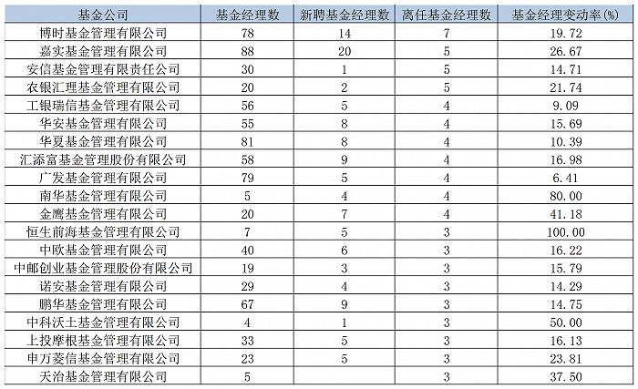 从今年以来离职基金经理的数量来看,博时基金为7位,嘉实、安信、农银汇理为5位,工银瑞信、华安、华夏、汇添富、广发、南华、金鹰均为4位。