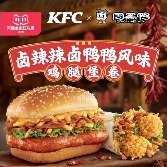 比如,周黑鸭陆续与乐事、肯德基等品牌联动,推出“卤辣辣卤鸭鸭风味鸡腿堡”“辣卤鸭脖味薯片”等产品,通过提高话题度和吸引力,“圈粉”更大范围的消费者。