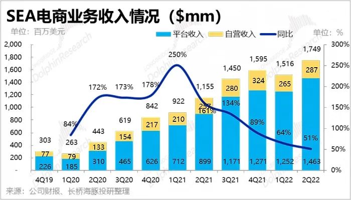 长桥海豚研报整理的 SEA 电商业务收入情况