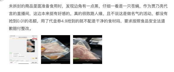 紧接着,就有媒体报道称,在罗敏直播间购买了水煮肉片等产品,收到货后,发现该产品外包装标注保质期为三天,而其中独立包装的菜和肉的保质期都长达12个月,与其宣传的“三天”不符合。