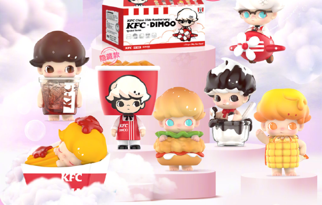 今年年初,肯德基联合泡泡玛特推出了一款售价99元的“DIMOO联名款盲盒套餐”,作为盲盒爱好者特别是“DIMOO”系列的狂热粉丝,Jenny为了集齐套餐附赠的6个常规款和1个隐藏款盲盒,吃了将近半个月的肯德基快餐。