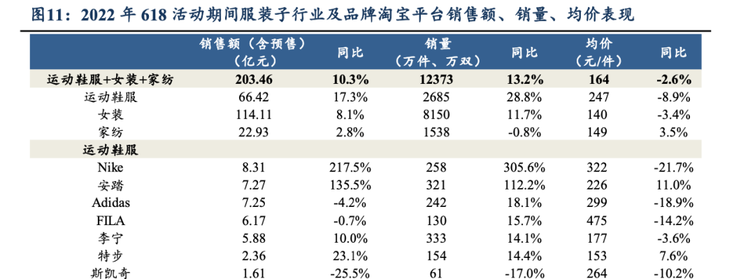 虽然最近 3 个季度耐克大中华区营收连续下跌,但其市场影响力仍不容小觑。根据东吴证券的数据,今年 6.18 期间,耐克在淘宝的销量和销售额均居行业第一。