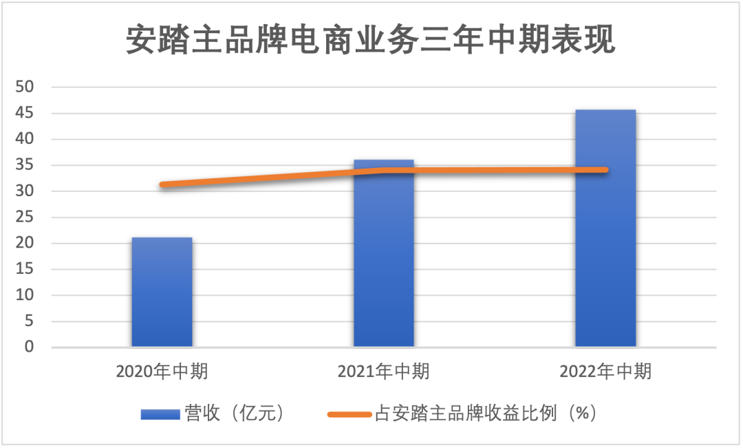 当然,疫情之下所有品牌都强化了电商业务。近三年,安踏主品牌电商业务收入也一直呈上涨趋势。